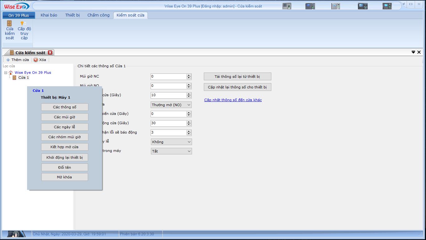 - Quản lý múi giờ riêng cho khóa cửa ở hai chế độ thường đóng (NC) và thường mở (NO) khác nhau.